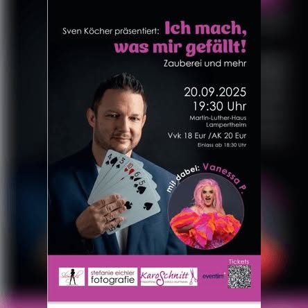 Unter dem frechen Titel „Ich mach was mir gefällt!“ bringt Zauberkünstler Sven Köcher aus Lampertheim eine eigene Show auf die Bühne – und das mit Stil, Witz und einer ordentlichen Portion Magie!
